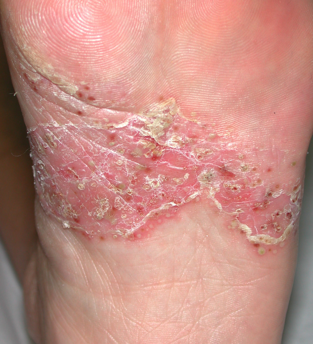 La localisation des lésions aux paumes et aux plantes n'est pas rare dans le psoriasis Il s'agit donc d'une forme particulière de psoriasis dite “psoriasis palmo-plantaire”. La peau épaissie perd de sa souplesse et elle se fissure. Ces fissures sont douloureuses, elles peuvent saignoter et elles sont surtout très invalidantes, gênant le patient dans sa vie quotidienne (cuisine, chaussage, marche…), dans sa vie sociale (impossibilité de serrer la main) et professionnelle conduisant parfois à un arrêt de travail.