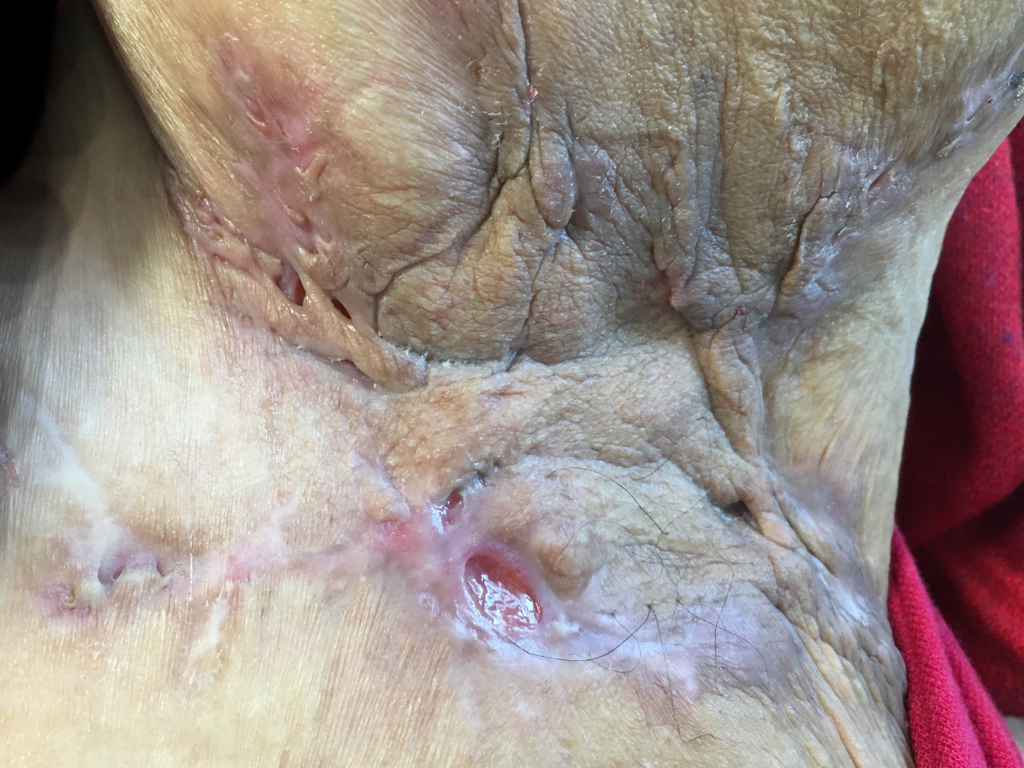 La présence de lésions faciales notamment pré- ou rétro-auriculaires, mandibulaires doit faire évoquer un diagnostic d’HS faciale.