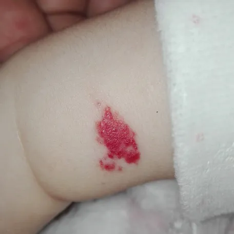 - si l'hémangiome s'ulcère, ce qui est douloureux pour l'enfant ou en cas de formation de croûtes en surface