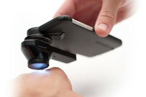 L’appareil de base est composé d’une lentille qui grossit 10 fois, à focale variable, d’un éclairage LED, et d’une plaque de contact transparente (polarisée ou non).