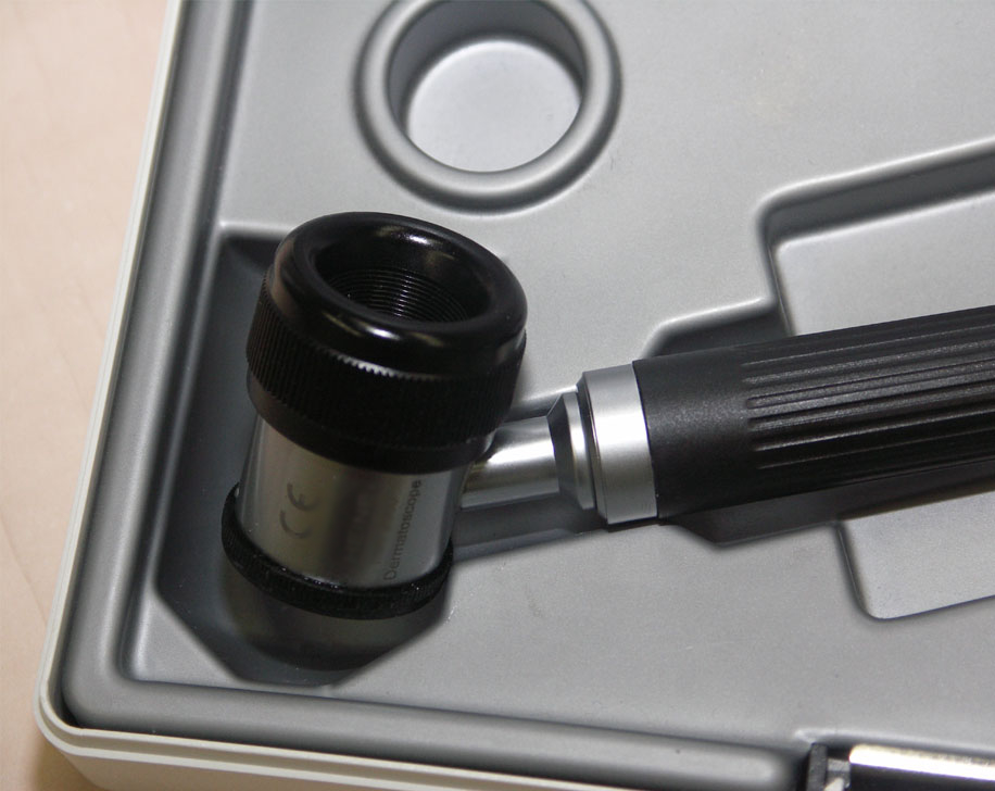 La dermatoscopie ou dermoscopie, est une technique utilisée par les dermatologues pour étudier de façon plus précise diverses lésions de la peau. Elle nécessite l’utilisation d’un outil appelé dermatoscope (ou dermoscope), qui est composé d’une lentille grossissante et d’une lumière, polarisée ou non. Il s’agit d’une loupe éclairante qui grossit 10 fois, et qui permet de mieux visualiser la peau dans son épaisseur, dans sa partie superficielle.