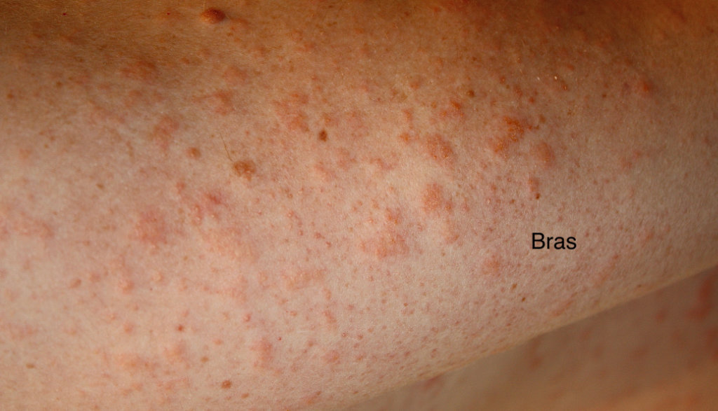 Les papules ressemblent souvent à celles de l' urticaire, mais des aspects variés sont possibles, d' où le terme « polymorphe ».