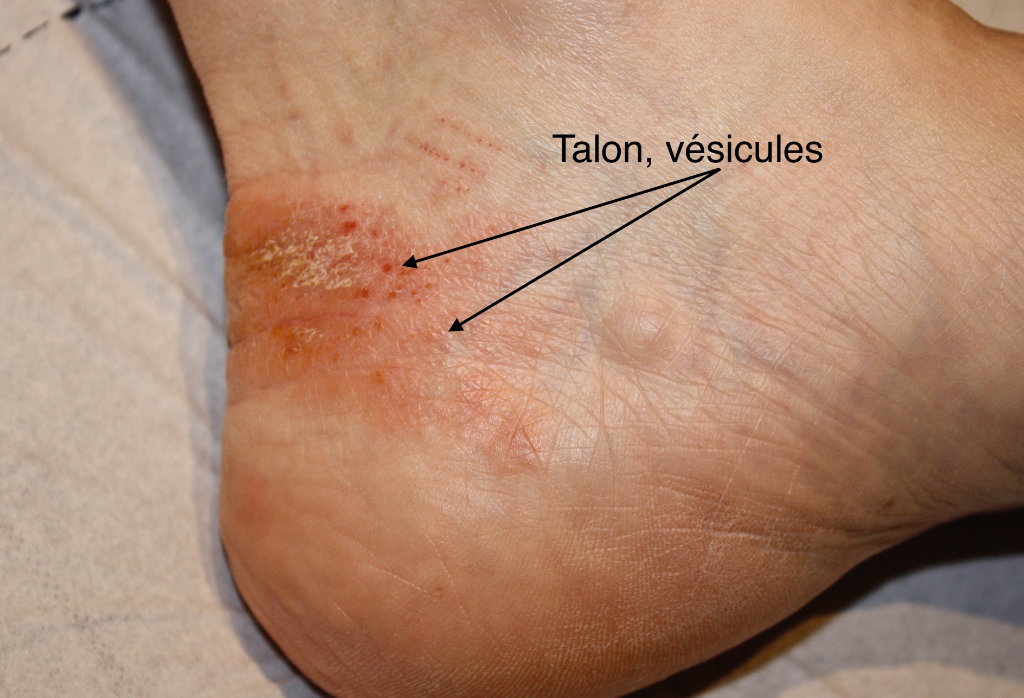 Des pustules (petites cloques remplies de liquide trouble) sont possibles.