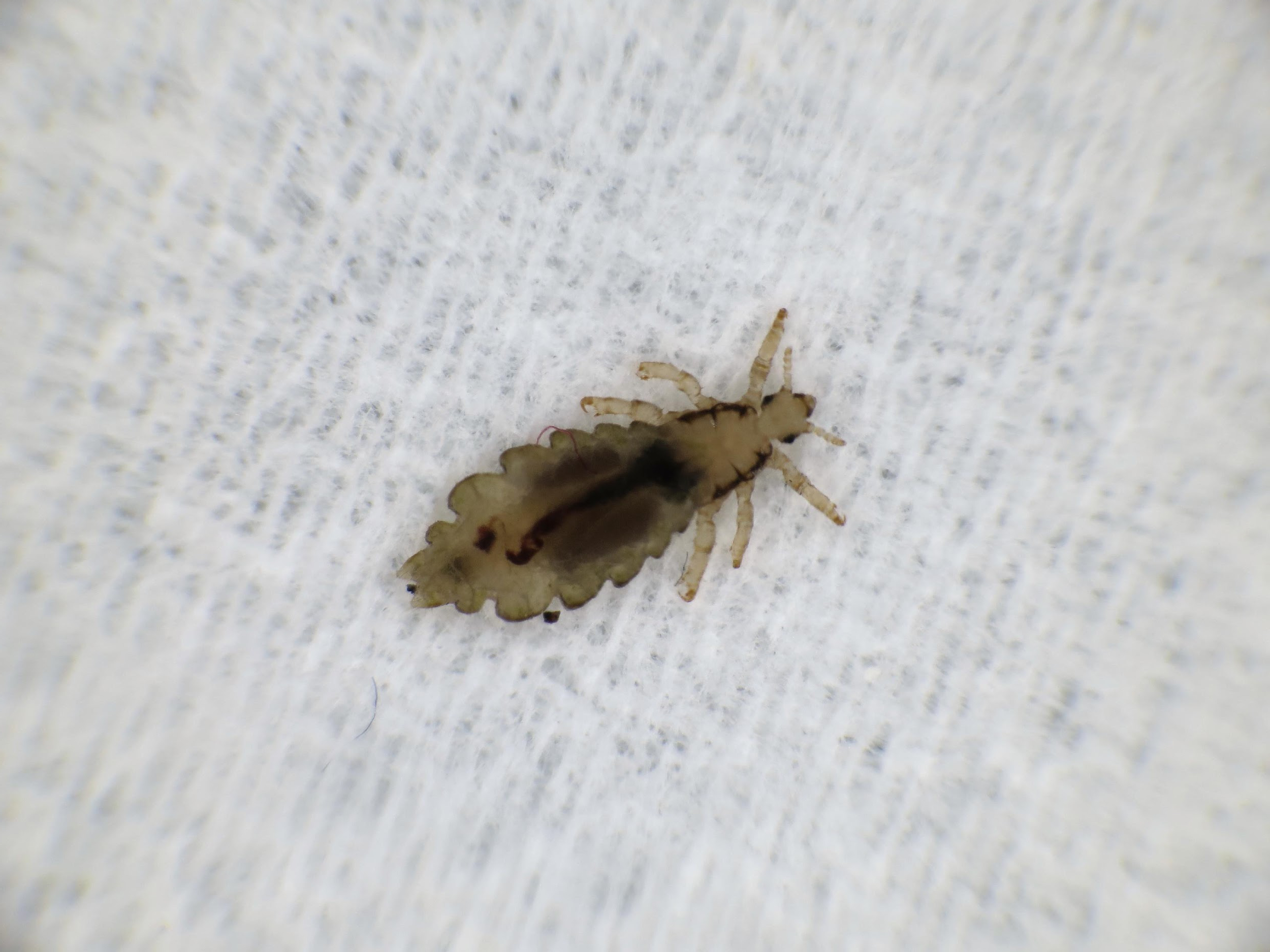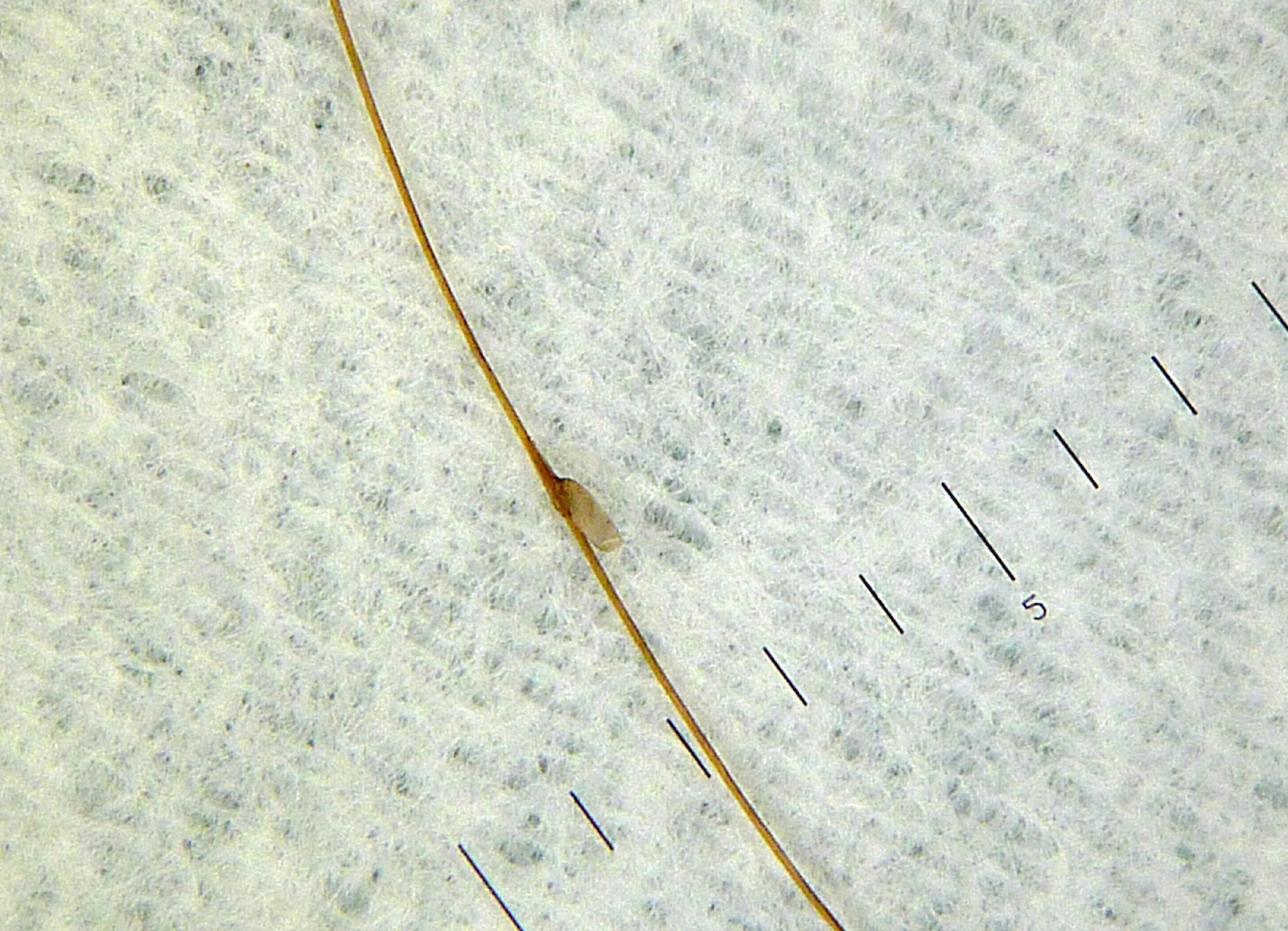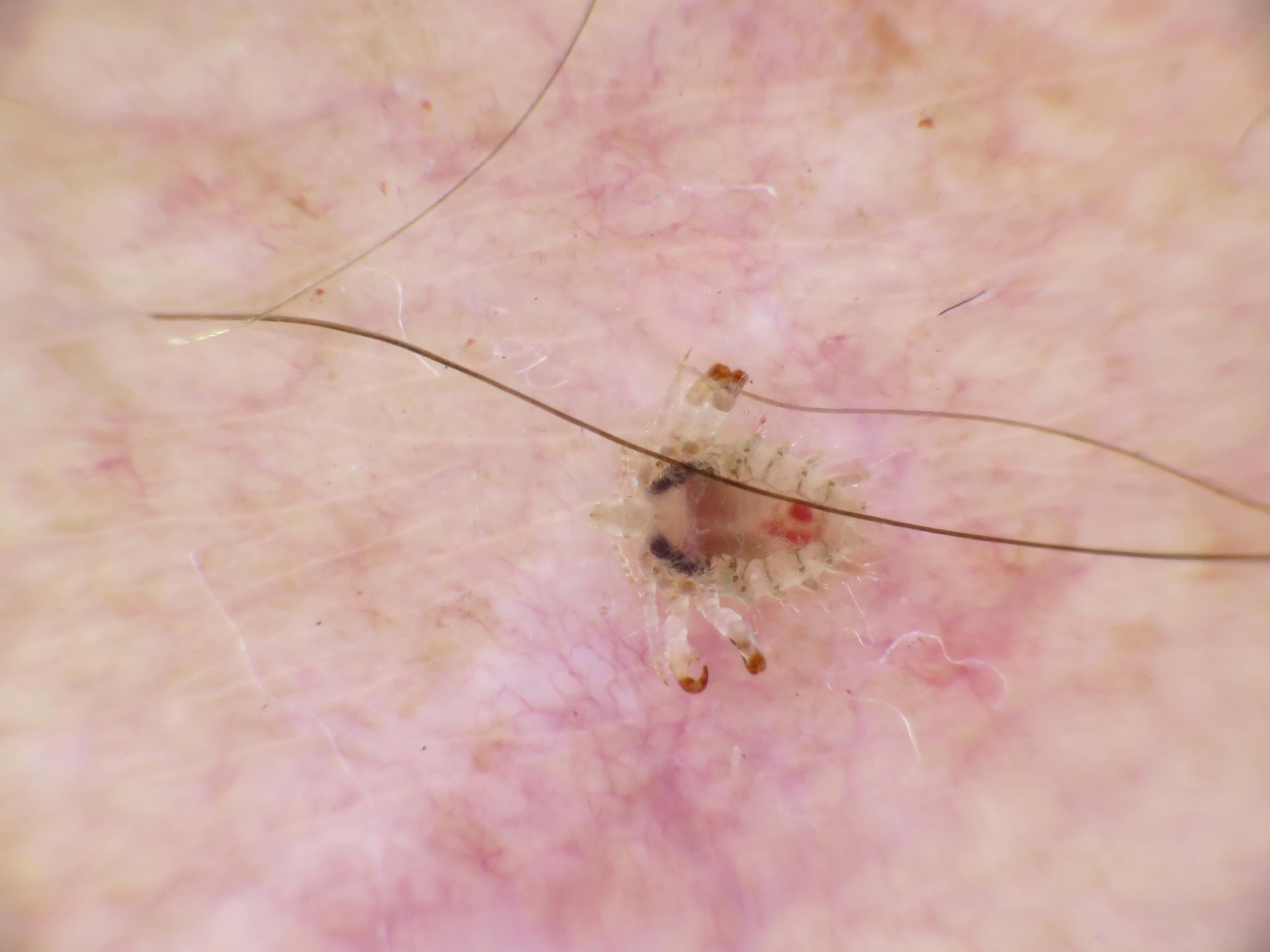 Ce parasite a un corps large avec des pattes arrières munies de crochets pour s' agripper au poil.