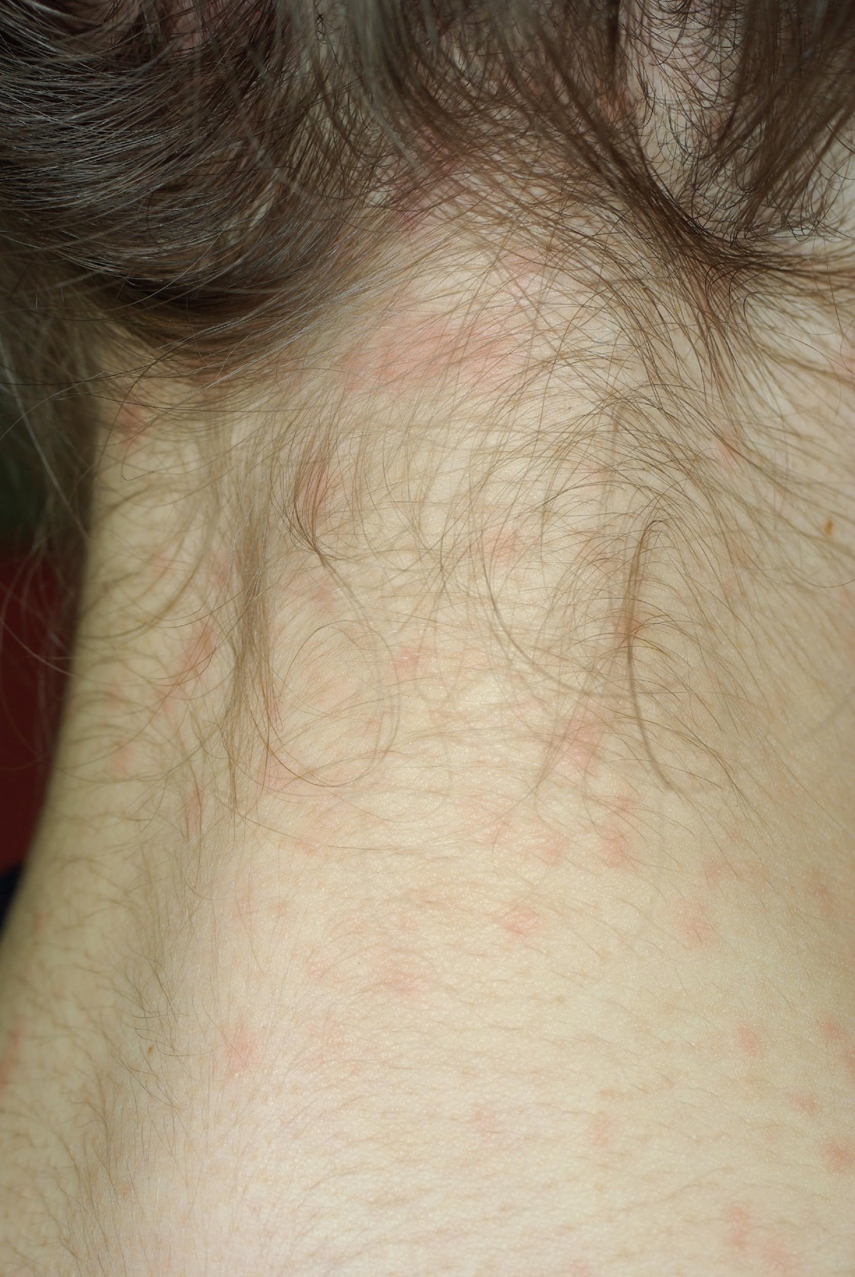 - On les découvre parfois à cause d' une éruption de la nuque, d' une infection du cuir chevelu.