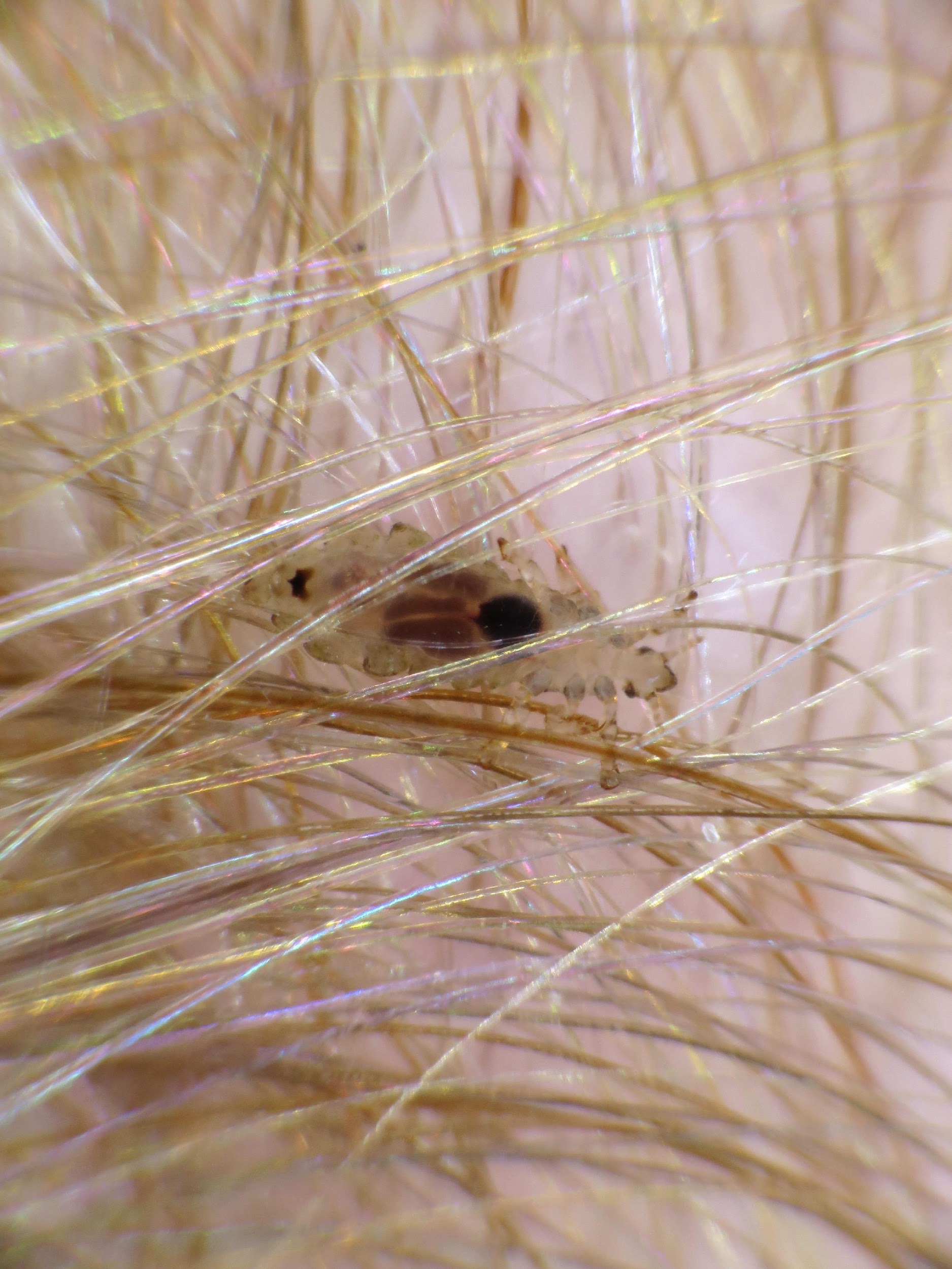 Les lentes ressemblent à de petites boules ovoïdes blanc grisâtre à brunâtres qui sont fixées sur les cheveux ou les poils. Lorsqu' on les manipule, elles ne coulissent pas, ne tombent pas, contrairement par exemple aux pellicules. Quand les lentes sont translucides, c' est que la nymphe est sortie, elle est vide.